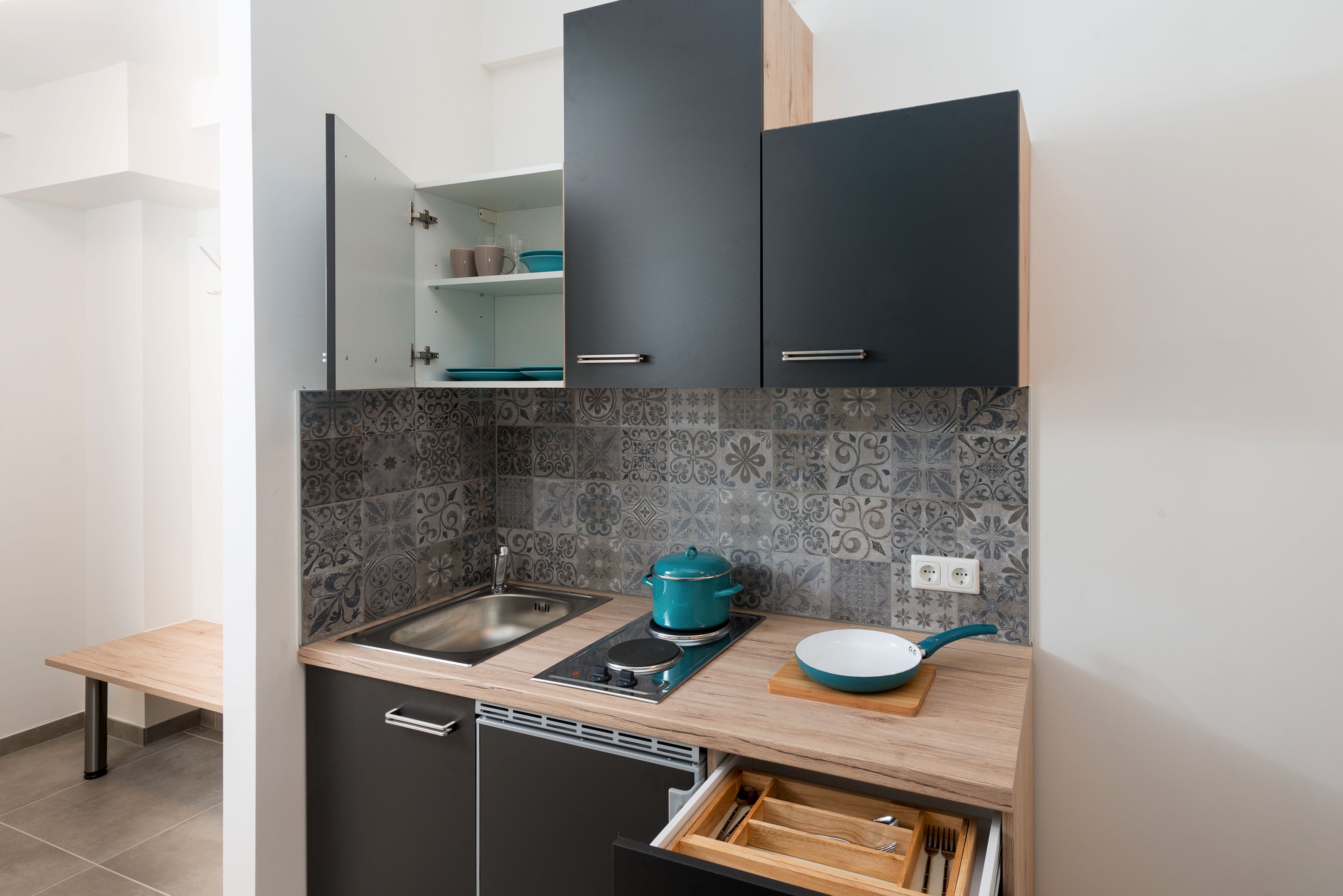 Unsere Studio-Apartments verfügen über ein komfortables Singlebett, eine voll ausgestattete Küchenzeile für Selbstversorger mit Kühlschrank, einen Flachbildfernseher mit Satellitenempfang, gratis WIFI, eine Dusche und Toilette sowie eine kleine Terrasse mit Sitzgelegenheiten.